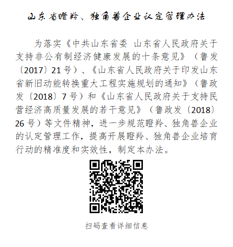 山東省瞪羚、獨(dú)角獸企業(yè)認(rèn)定管理辦法