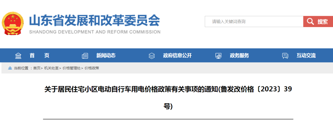 近日山東省發(fā)展和改革委員會發(fā)布通知明確居民住宅小區(qū)電動自行車用電價格政策有關(guān)事項
