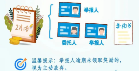 答: 王師傅可在收到領(lǐng)取獎勵通知之日起2個月內(nèi)憑本人有效身份證明領(lǐng)取獎勵。委托他人代領(lǐng)的,受托人須同時持有舉報人授權(quán)委托書、舉報人和受托人的有效身份證明。